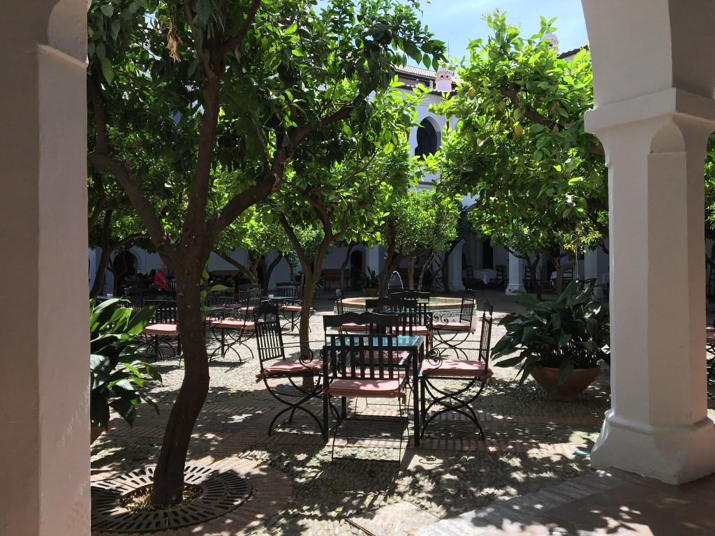 Allí seguía el patio de naranjos y allí seguía el fenomenal refectorio que oficia como restaurante. Un Parador pequeño, pero con el máximo de sabor.
