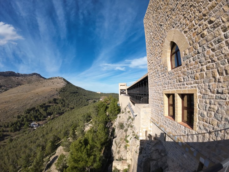 Visible desde unos cuantos kilómetros antes de llegar, el castillo de Santa Catalina preside la ciudad de Jaén y, a su vera, tiene como vecino en exclusiva al protagonista de nuestra entrada. El Parador de Jaén es, en realidad, bastante más moderno que el castillo, que data como tal del siglo XIII, coincidiendo con la conquista de la ciudad por parte de Fernando III el Santo, en 1246. El Parador está situado de manera inmediatamente contigua al castillo y comparte con él unas vistas únicas a la ciudad y a la sierra de Jabalcuz.