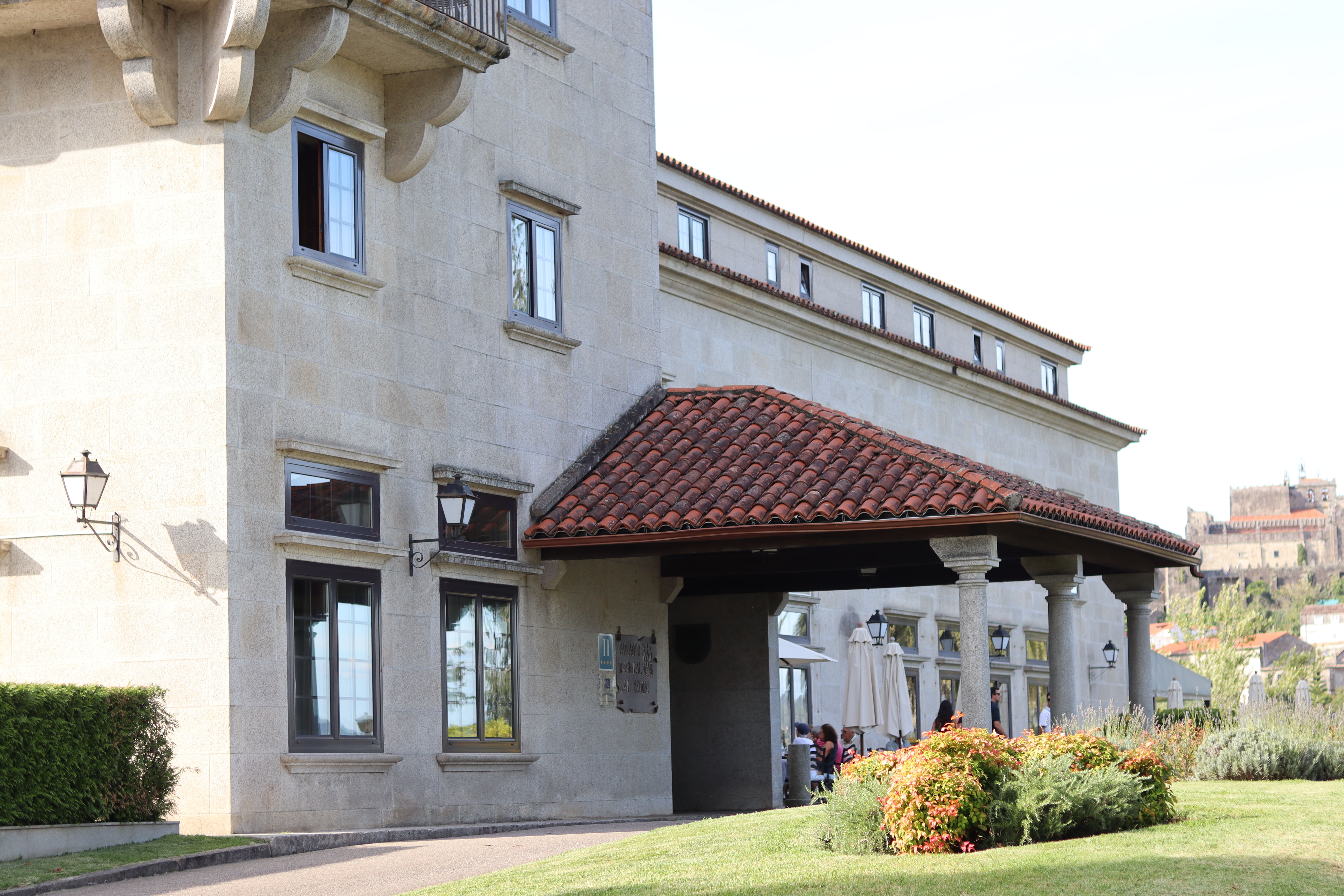 Como en la canción de Andrés do Barro, pola beira do Miño se alza el Parador de Tui. Entre dos tierras, las que separa el río de ríos galaico, España y Portugal, y prácticamente pegado al puente internacional que las une. En la misma orilla y justo antes de emprender la subida a la bella localidad de Tui.
