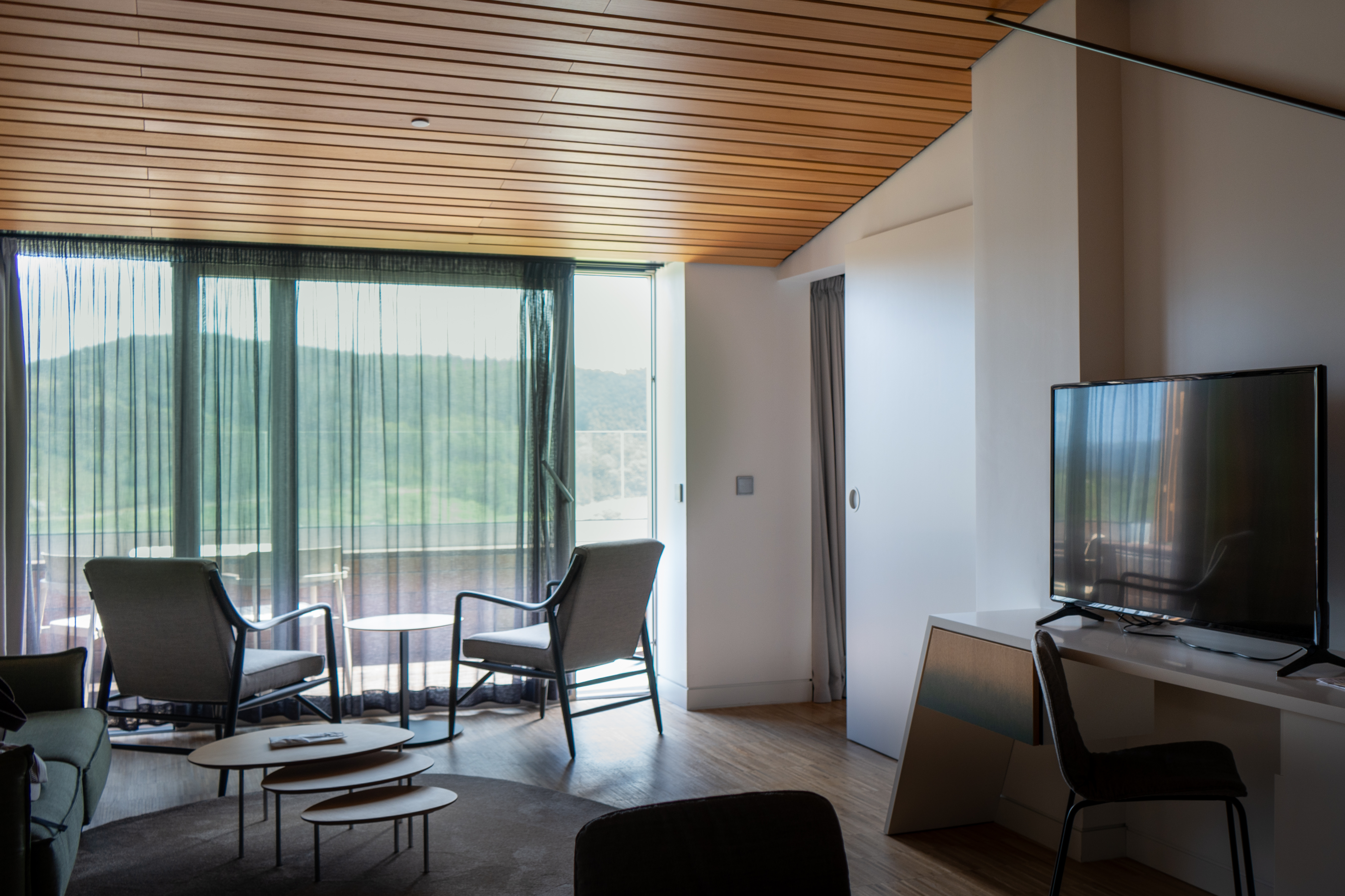 No defrauda, ya lo adelantamos. El Parador es increíble y la curva de asombro que produce al huésped no decae hasta prácticamente el momento de abandonarlo. No es un Parador al uso, y quizás por eso la sorpresa que genera es todavía mayor. No es solo que se encuentre en un entorno tan particular como la escarpada costa de la comarca de Finisterre, a caballo entre las Rías Altas y las Rías Baixas (tomando el cabo de Finisterre como divisoria), sino que el Parador es un auténtico alarde de modernidad y de integración con el entorno. De manera bastante evidente, se ha buscado con el proyecto de Parador un maridaje lo más afinado posible del edificio con la desbordante naturaleza que le rodea.
