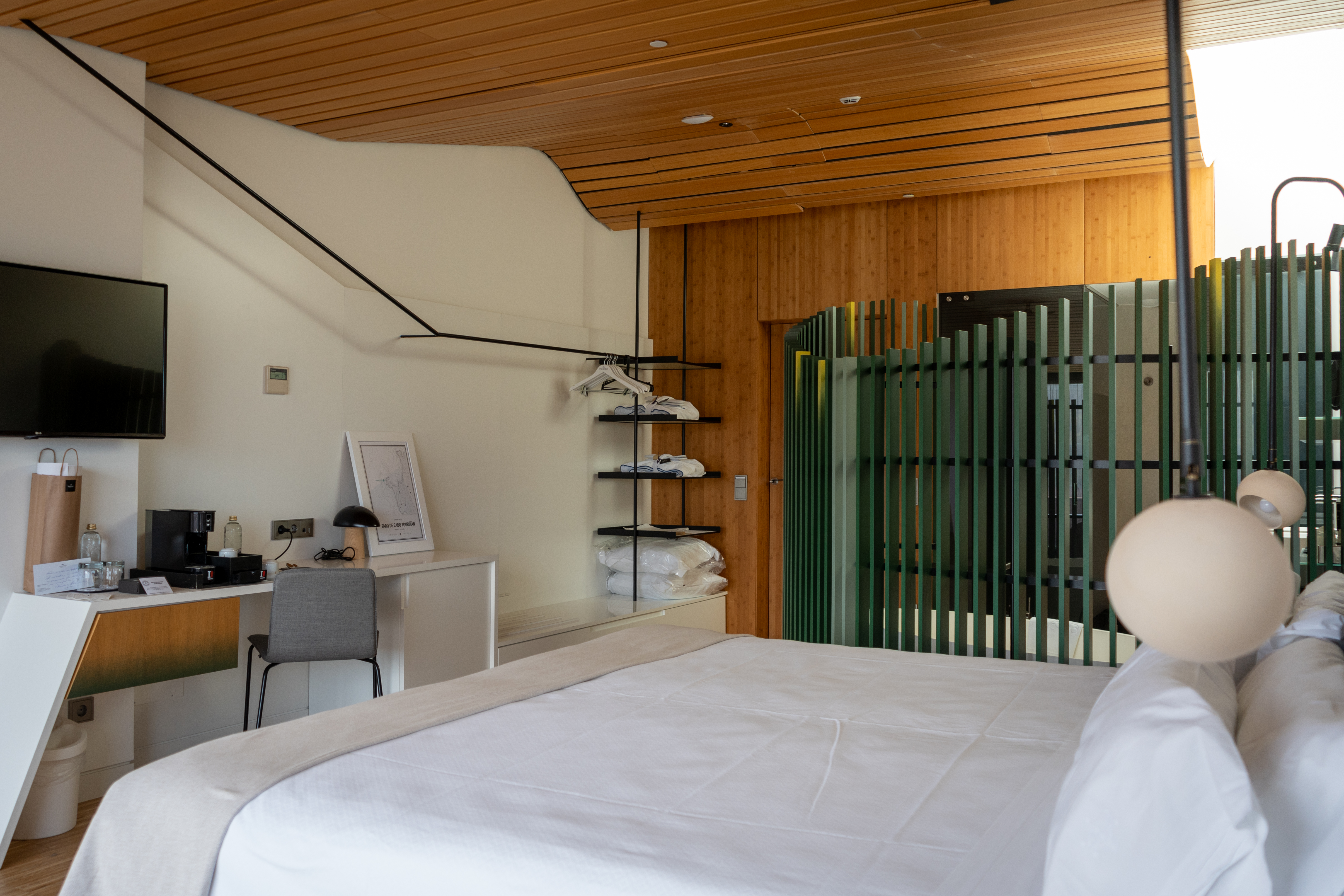 Las habitaciones, con vista a la Playa de Lourido, al litoral mugiano y a la Punta da Barca, son de las más modernas, por diseño, de la red. Las zonas comunes no se quedan atrás y la piscina recoge el concepto infinity pool para abrirse a la costa gallega. Arriba, el restaurante Nosa Señora da Barca es un compendio reinterpretado de gastronomía gallega. Abrumados como estábamos, por el Parador y todo lo que hay para hacer y ver en la zona, no probamos el spa, que suponemos a la altura del resto.